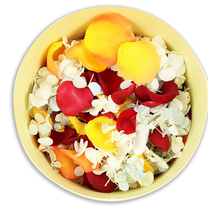 Immerse yourself in the beauty of our Luxurious Petal Symphony. This stunning bouquet features a carefully curated selection of Hydrangea, Rose, and Chrysanthemum petals, each chosen for their exceptional quality and vibrant colors.